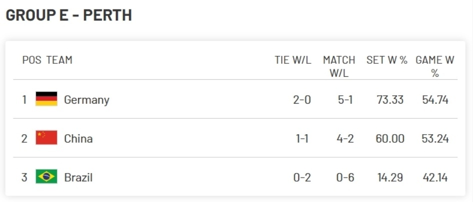 第三场混双决胜,张帅搭档张之臻以2-6、6-7(3)的比分不敌西格蒙德/兹维列夫组合,中国队大比分1-2负于德国队,名次E组第二。