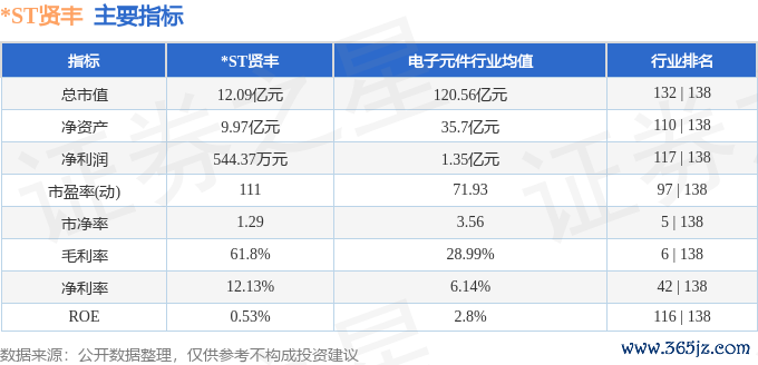 *ST贤丰2024年中报泄漏,公司主营收入2855.91万元,同比下降35.82%;归母净利润544.37万元,同比上升122.98%;扣非净利润-1540.32万元,同比上升58.18%;其中2024年第二季度,公司单季度主营收入1190.93万元,同比下降49.56%;单季度归母净利润559.76万元,同比上升122.42%;单季度扣非净利润-671.55万元,同比上升78.2%;欠债率7.47%,投资收益-89.24万元,财务用度117.01万元,毛利率61.8%。*ST贤丰(002141)主贸易务:兽用疫苗业务。