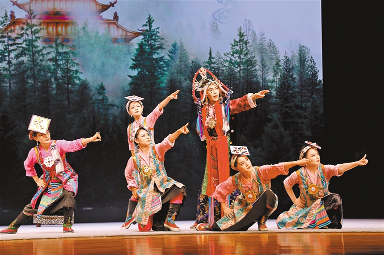 平珍(右三)饰演藏戏《卓娃桑姆·寻王》舞台照。